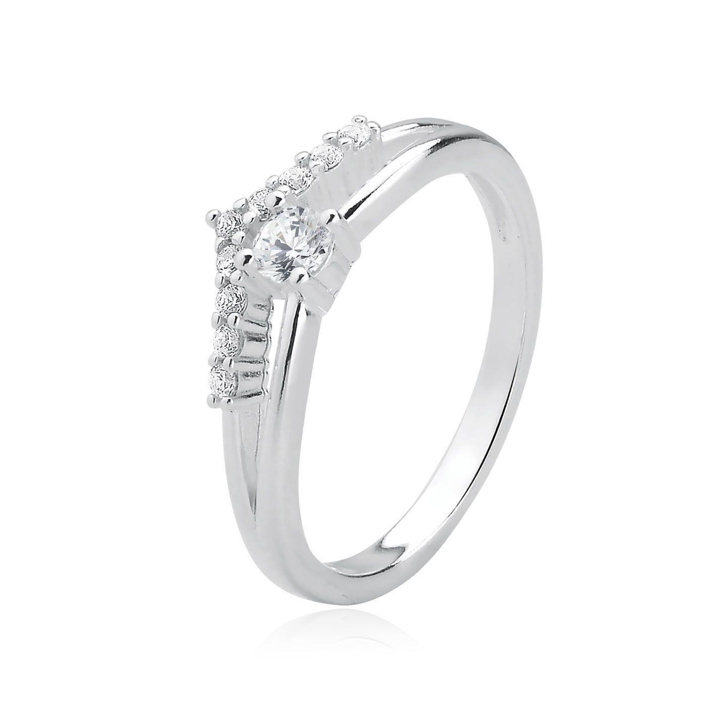 Anel de Prata 925 com detalhe central em pedra zircônia / AN0668; 7,0 – BAGLLIOR