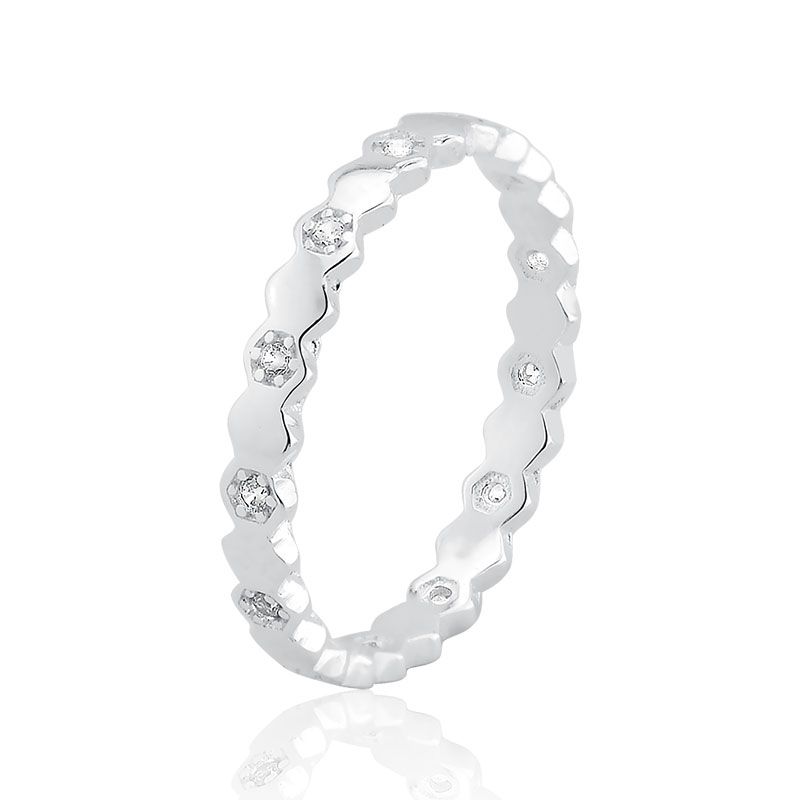 Anel geométrico de Prata 925 com pedras zircônia / AN0564; 4,3 – BAGLLIOR